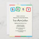 Les couleurs et les blocs lumineux de lettre font à ceci un amusement invitation non sexiste de baby shower. Si vous savez le genre du bébé vous pourriez même customiser cette invitation plus loin !