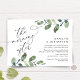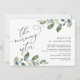 Belle conception romantique moderne, dans un thème d'aquarelle de feuilles d'eucalyptus, Annonce de mariage en fuite, Carte d'invitation (Le Lendemain). C'est parfait pour votre réception de mariage et votre fête de célébration post-mariage. Ajoutez les détails de votre célébration de brunch / dîner de fuite.