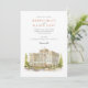 Invitation vos invités à une occasion vraiment mémorable avec ce faire-part de mariage d'aquarelle sophistiqué, avec l'emblématique Drake Hotel à Chicago. L'oeuvre d'art capture avec beauté l'architecture classique et grandiose de ce site célèbre, connu pour son élégante façade couleur calcaire (crèmes et beiges) et ses sections supérieures marron-rougeâtre ou terre cuite distinctives, arborant fièrement des drapeaux américains. Rendu dans un style d'aquarelle doux et raffiné, l'hôtel est gracieusement encadré d'arbres stylisés aux feuilles verts et jaunâtres, ajoutant une touche de douceur naturelle à la grandeur urbaine. Cette invitation exhale l'élégance intemporelle de Chicago et est parfaite pour un mariage de ville classique et sophistiqué. L'avant présente élégamment les détails de votre mariage, tandis que l'arrière offre "Les détails les plus fins" pour des informations sur l'invité. La palette de couleurs comprend des crèmes imposantes, des beiges, des tons chauds rougeâtres, des tons verts et jaunâtres pour le feuillage, et des tons doux.