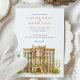 Invitation vos invités à une fête urbaine sophistiquée avec ce magnifique faire-part de mariage aquarelle, avec l'emblématique Rookery Building à Chicago. L'oeuvre d'art capte de manière exquise la façade détaillée du site historique, connue pour son architecture de style roman et commercial, en terre cuite, et de couleur rougeâtre, rendue dans un style doux et raffiné d'aquarelle. Les tons chauds du bâtiment, brun rougeâtre, ocre et beige, sont complétés par des touches de gris-bleu dans les fenêtres. Il est agréablement encadré de feuillage stylisé : de part et d'autre, il y a des sprigs vert clair, arrondis de feuilles et de feuilles jaunâtres allongés, ainsi que des buissons verts molles à la base, ajoutant une touche de douceur organique à la grandeur architecturale. Cette invitation conviendra parfaitement aux couples à la recherche d'un mariage Chicago classique, architectural et élégant. L'avant présente élégamment les détails de votre mariage, tandis que l'arrière offre "Les détails les plus fins" pour des informations sur l'invité.
