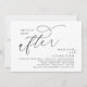 Marquez le début de votre éternité avec élégance en utilisant notre carte d'invitation à la célébration de l'élévation du mariage à thème contemporain noir et blanc, "Heureusement toujours après". Parfait pour les couples qui souhaitent profiter de leur joyeux événement, cette invitation exhale le raffinement avec un soupçon de jeu, préparant le terrain pour un événement mémorable. Décoré avec un thème design contemporain intemporel, il ajoute une touche de charme raffiné à vos festivités. Conçu par TeeshaDerrick, cette invitation promet de capturer magnifiquement votre histoire d'amour.