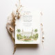 Invitation vos invités à une occasion vraiment mémorable avec cet exquis faire-part de mariage d'aquarelle, présentant l'emblématique Breakers Hotel à Palm Beach, Floride. L'oeuvre d'art illustre magnifiquement la grandeur de la station de luxe historique, blanche et crème, avec ses tours jumelles signées fièrement arborant des drapeaux américains. Décorée dans un style d'aquarelle doux et élégant, la scène est encadrée par un paysage tropical luxuriant composé de grands palmiers verts gracieux. Au premier plan, un lit de fleurs circulaires et éclatant présente de belles fleurs aux tons rouges et roses doux, peut-être des plantes roses ou classiques, complétées par un feuillage vert riche et des pelouses méticuleusement manucurées. Cette invitation exsude le raffinement et est parfait pour un mariage de luxe de destination ou une fête de Floride classique. L'avant présente élégamment les détails de votre mariage, tandis que l'arrière offre les "Détails du Finer" pour plus d'informations. La palette de couleurs comprend des blancs immaculés, des crèmes chaudes, des verdure verdoyante des palmiers et des pelouses, des rouges et des roses vifs des fleurs, et des tons de sable subtils des allées.