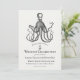 Invitations de mariage formelles mais uniques, illustrant une illustration vintage d'une pieuvre, d'une ancre et de vos informations uniques sur la date du mariage qui l'entoure. L'avant de l'invitation contient une couleur crème gris-gris, tandis que l'arrière de l'invitation affiche un noir de charbon profond.