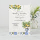 Réception de mariage Lemon Grove seulement invitation. Le design se compose d'un citronnier, de tuiles méditerranéennes bleues et jaunes, d'une branche de citrons et de fleurs en fleurs. Parfait pour un thème de citron mariage, mariage d'inspiration italienne, villa méditerranéenne rustique esthétique, couleurs mariage bleues et jaunes ou une mariage extérieure à toute heure de l'année. Pour coordonner les invitations, la papeterie, le décor de la journée et de la table, les jeux et les panneaux de mariage, veuillez consulter ma collection de Mariages Lemon Grove ou m'envoyer un message pour ajouter tout autre élément dont vous avez besoin.
