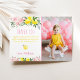 Cette adorable carte présente des citrons colorés à l'aquarelle, des fleurs roses et des confettis en fausse feuille d'or.