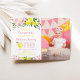 Cette adorable invitation présente des citrons colorés à l'aquarelle, des fleurs roses et des confettis de feuille d'or imitation.