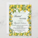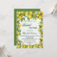 Un arrière - plan vert à l'eau. Décoré de citrons jaunes et de feuillage vert. Personnalisez et ajoutez un nom et des détails du parti. Le nom est écrit avec un script de style écrit à la main. Retour : arrière - plan vert