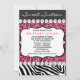 Amusant léopard et zèbre rose chaud avec strass rose et sweet sixteen noir invitation fête d'anniversaire. Ajoutez vos détails à l'avant et/ou à l'arrière en cliquant simplement sur le bouton orange "Customisez-le !" pour commencer à ajouter vos détails d'événement, le style de police, la taille et la couleur de police et le libellé. Veuillez noter que tous les toppers de gâteau, cartes et modèles d'invitation que vous trouverez sur Zazzle sont des graphiques imprimés sans bijoux, arcs, surélevés, gaufrés, ni pièces ou pièces ajoutées.