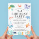Invitations d'anniversaire pour enfants mignonnes avec un thème d'animaux de mer pour n'importe quel âge avec un design neutre de genre. Il comprend un poisson, un dauphin, des crevettes, une tortue, une baleine, un hippocampe, une étoile de mer, un crabe, et plus encore.