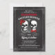 N'IMPORTE QUEL ÉVÉNEMENT. Tout le texte est modifiable. Vous pouvez modifier le libellé de tout événement - Couples Shower, Engagement Party, Fête des mariées, Anniversaire Party, etc. Conçu avec tableau noir rétro, crânes et roses rouges et cravate arc. Le dos est décoré avec élégance dentelle graphique. Obtenez cette invitation élégante dès maintenant !