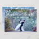 Conception de vacances personnalisée avec texte conçu pour le couple célébrant leur première saison de vacances mariées. Texte graphique : "Tout est marié et lumineux" avec ligne de texte pour la personnalisation. Bande optionnelle de couleur opaque derrière le texte. Remplacez votre photo par une carte complètement unique. Conception complémentaire à l'envers.
