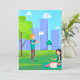 Les gens s'engagent dans les médias sociaux dans un parc municipal. Cette conception semble vraiment efficace sur ces invitations