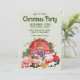 Cette invitation de fête de Noël personnalisée présente un dessin d'aquarelle mignon d'une ferme. Des petits animaux de ferme pour bébés sont habillés de chapeaux de Santa à l'extérieur d'une ferme de campagne. L'arrière - plan est un vert sage doux avec du texte brun.