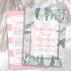 Cette invitation de week-end à la bachelorette "The Summer I Turned Married", rétro et chic de Californie vintage/Beverly Hills/Palm Springs, présente des feuilles tropicaux luxuriants avec un cadre en faux or sur un arrière - plan à rayures rose pâle. Au verso, on trouve un itinéraire. Personnalisez-le selon vos besoins. Vous pouvez trouver des produits correspondants dans mon magasin.