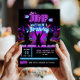 Fun trampoline park birthday invitations with a neon theme are a fun, high-impact way to get kids excited about an energetic party experience. Featuring bright, neon text in purples and blues, silhouettes of kids jumping, and a vivid trampoline park backdrop, this design instantly sets the tone for an action-packed celebration. The bold colors and laser-light effects give it a dynamic look that’s perfect for boys’ or girls’ birthdays, especially for parties held at trampoline parks or indoor play centers with blacklight or LED lighting. Whether you're hosting a bounce-themed birthday, jump zone party, or glow celebration, this invite makes a bold first impression. Perfect for parents planning a memorable, movement-filled birthday for active kids who love to jump, bounce, and play. Available as printed cards or instant digital download.