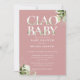 Baby shower Ciao invitation avec élégante et jolie typographie végétale botanique feuillage sur un arrière - plan rose rose poussiéreux. Conçu par Thisisnotme©