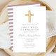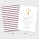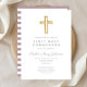 Moderne Purple Stripes Cross Girl First Communion Invitation.