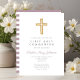 Invitation LETTRE violette moderne Croix Fille première commu