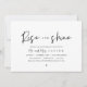 Carte d'invitation de brunch d'après mariage sur le thème du script noir moderne (Lever et éclat). Elle est parfaite pour votre célébration de brunch d'après mariage. Ajoutez vos détails dans la police / lettrage correspondant.