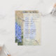 Invitation assortie pour une réception officielle pour des réceptions avec une liste d'invités restreinte ou des événements à un endroit distinct. Pour l'amoureux de la nature qui prévoit un thème de mariage extérieur, à la campagne ou dans un jardin rustique, a un lieu de grange western ou qui aime simplement les fleurs ! CONCEPTION : L'arrière-plan et les illustrations de bordure de cette invitation de mariage élégante, formelle mais quelque peu rustique sont peints à la main par Audrey Jeanne Roberts. L'arrière-plan est un style de parchemin vieilli, usé, en détresse avec une finition craquelée. De magnifiques flèches de fleurs de delphinium bleu foncé s'élèvent vers le ciel dans diverses nuances de bleu, du ciel au pervenche. Une fleur de pavot Matilija blanche (souvent appelée "fleurs d'œuf frit" ou "pavots de fleurs en papier") a été peinte à l'aquarelle, en direct depuis les propres jardins d'Audrey Jeanne. Un papillon Blue Morpho survole une demoiselle dragonfly qui se repose sur le pavot. Au verso se trouve la même image sans le look vélin semi-transparent et la bordure. Un ensemble complet d'invitations de mariage assorties est disponible pour tous vos besoins de mariage, de douche de mariée ou d'autres