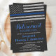 Ligne Bleue Mince Invitations de retraite de la police. Célébrez des années de service dévoué, des amis et de la famille invitations à votre parti de retraite d'application de la loi avec cette Invitation à la retraite de la police de la Ligne Bleue mince. Etats-Unis Drapeau américain dans les couleurs Police Drapeau, moderne design noir blanc et bleu tendance. Cette invitation à la retraite des policiers est également parfaite pour les invitations à l'obtention d'un diplôme d'académie de police, lieu de changement dans la personnalisation. Consultez notre collection pour les cadeaux de retraite de la police, les faveurs de la retraite de la police, et les fournitures. DROIT D'AUTEUR © 2021 Judy Burrows, Black Dog Art - Tous droits réservés. Ligne Bleue Mince Drapeau Cuir Police Retraite Invitation