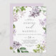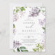 Ce lilas rustique tout en un faire-part de mariage est parfait pour un mariage de printemps ou d'été. Le design floral romantique et élégant présente des fleurs sauvages lilas violets d'aquarelle aux allures de jardin boho. Enregistrez du papier en incluant les détails au verso du faire-part de mariage plutôt que sur une carte de boîtier séparée. Inclure également les informations RSVP si votre invité répondra par voie électronique (facultatif).