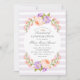 Des invitations de Sacrement de Confirmation personnalisées et abordables personnalisées avec vos détails d'événement. Ce joli design botanique présente un cadre aquarelle de pêche et de fleurs de lavande sur un arrière - plan rayé violet pastel. Utilisez les outils de conception pour customiser le texte, modifier les polices et les couleurs ou ajouter vos propres photos pour créer une élégante invitation à la confirmation florale printanière.