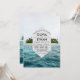 Cette invitation marine moderne bleu est parfaite pour une croisière ou un fiançailles sur la plage, mariage après la fête, la retraite, la remise des diplômes ou tout événement heureux. Le design simple présente un paysage marin magnifique, des vagues, des animaux de mer et des récifs colorés.