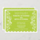 Un unique drapeau picado en papier peint se dresse en vert citron vert brillant contre un blanc arrière - plan aux invités invitations à votre prochaine fête. Les fleurs graphiques créent des bordures latérales. L'inverse répète la bordure de la bannière unique. Utilisez-le pour une fête de fiançailles mexicaine, une fête du Cinco de Mayo, une fête d'anniversaire ou une fête de la douche nuptiale. Disponible avec des produits correspondants.
