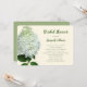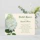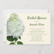 Modèle d'invitation à la douche nuptiale à fleurs d'hydrangée blanche. Couleur écru avec texte vert foncé en script et polices imprimées. Une grande fleur d'hydrangée blanche, appelée Limelight décore le côté gauche et l'inverse est vert sauge solide.