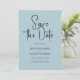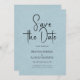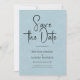 Whimsical minimaliste moderne, personnalisable typographie de script noir, élégante invitation à sauvegarder la date. La texture en lin imprimé bleu clair arrière - plan ajoute une touche d'élégance classique et organique. D'autres couleurs sont disponibles.