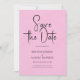 Whimsical minimaliste moderne, personnalisable typographie de script noir, élégante invitation à sauvegarder la date. L'arrière - plan de texture de lin imprimé rose clair apporte une touche d'élégance classique et organique. D'autres couleurs sont disponibles.