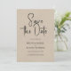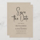 Whimsical minimaliste moderne, personnalisable typographie de script noir, élégante invitation à sauvegarder la date. L'arrière - plan de texture de lin imprimé de couleur claire apporte une touche d'élégance classique et organique. D'autres couleurs sont disponibles.