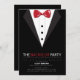 Invitez-les à la soirée d'enterrement de vie de garçon avec cette invitation élégante et stylée représentant un smoking noir et un nœud papillon rouge. <a href='http://www.freepik.com/free-vector/bachelor-party-vector_710239.htm'>Conçue par Freepik</a><br/>La carte est facile à personnaliser avec votre texte, police, couleur de police, options de forme de papier et choix parmi six types de papier.<br/><br/>Vous ne trouvez pas exactement ce que vous cherchez ? Tous nos produits peuvent être conçus sur mesure pour répondre à vos besoins sans frais supplémentaires.<br/><br/>Contactez-nous simplement à askcottonlamb@gmail.com<br/><br/>Produits coordonnés disponibles :