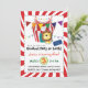 Joli lion et tente de cirque avec drapeaux de fantaisie. Bordure de cadre rayé rouge. Le dos des invitations est un simple point rouge et un arrière - plan blanc. Tout le texte est réglable.