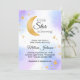 Celebrate this magical milestone with a whimsical celestial baby shower invitation. The design features a faux gold foil crescent moon surrounded by stars set against a soft purple and blue watercolor cloud background. This gender-neutral layout is perfect for parents expecting a surprise or hosting a dreamy evening-themed celebration.