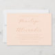 This elegant wedding invitation features a soft, blush pink background with sophisticated cursive typography that adds an air of timeless romance. The minimalist design focuses on the beauty of clean lines and understated color, creating a warm and inviting atmosphere perfect for celebrating love. Ideal for couples seeking a classic yet modern aesthetic, this invitation sets the tone for a memorable and intimate celebration. Customize it to reflect your special day details and share the joyous news with your loved ones in style.