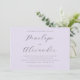 This elegant wedding invitation features a sophisticated and timeless design with an understated lavender background. The typography is gracefully scripted, adding a touch of elegance and formality to the overall look. The minimalist color palette creates a serene and refined mood, perfect for a classic celebration. Ideal for couples seeking a chic and polished aesthetic, this invitation sets the tone for an unforgettable evening filled with love and joy. Personalize it effortlessly to reflect your special day's details.