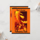 Voici une photo de près d'en haut d'un jack-o-lanterne tout allumé. Le jack-o-lanterne est assis sur un lit de feuilles dorés. Une lueur étrange vient du jack-o-lanterne. Cette invitation est disponible en plusieurs styles. Un symbole d'Halloween. Customisez au dos avec toutes vos informations personnelles. Il y a aussi des enveloppes et des timbres assortis.