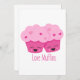 Une paire de muffins avec les mots amour muffins. Si mignon et super pour les valentines. Cette conception semble vraiment efficace sur ces invitations