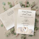 Des cygnes d'amour élégants sont présentés dans ce magnifique design personnalisé aux accents blanc et crème. Les cygnes sont gracieux et ils s'accouplent à vie, ce qui en fait des symboles romantiques pour votre mariage.