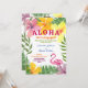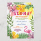 Invités Invitations dans un style tropical avec cette invitation à la fête luau avec des fleurs audacieuses d'hibiscus, des feuilles de palmiers et un flamant enjoué. Le design recto verso comprend un code QR pour RSVP, le site Web mariage et une photo du couple, ce qui le rend amusant, fonctionnel et magnifiquement personnel. Idéal pour les fêtes de plage, de jardin ou de destination.