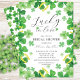 Irlandais moderne et amusant Lucky in Love Shamrock douche nuptiale Invitation avec une belle bordure de trèfle à quatre feuilles avec fer à cheval doré.