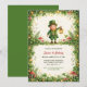 Celebrate a lucky little milestone with this adorable St. Patrick’s Day–themed first birthday design. Featuring a cheerful leprechaun holding a lantern, surrounded by lush green shamrocks, glowing lights, and woodland details, this invitation creates a magical Irish storybook feel that’s perfect for a baby’s 1st birthday.