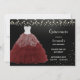 Surprenez tous vos invités avec ce design magique et rouge pour les quinze doux honneurs. Des éclats de diamant recouvrent le dessus de la robe, et des parties scintillant se dispersent dans les coins, sous des lampes à cordes. Arrière - plan noir.