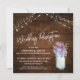 Comportant une police moderne manuscrite pour représenter un graphique représentant les mots "Réception de mariage", cette carte audacieuse est idéale pour célébrer votre mariage récent lorsque vous avez choisi un style rustique et décontracté. Le fond est recouvert de bois brun foncé profond drapé de brins de lumières blanches scintillantes. Un bouquet désordonné de fleurs sauvages aquarellées dans un pot Mason accentue la surface sombre. Votre propre texte est facilement ajouté pour personnaliser ce modèle autant que vous le souhaitez. Utilisez les champs fournis pour simplement entrer vos informations personnelles, et cliquez pour personnaliser davantage si vous souhaitez repositionner l'une des couches déverrouillées. N'hésitez pas à me contacter pour des demandes spéciales ou pour une aide à la personnalisation.