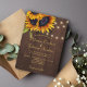 Elégant chic été ou mariage de automne élégante invitation modèle sur le bois brun grange avec un beau bouquet de tournesols et cordes ou des lumières scintillantes. Remplissez vos informations dans les zones, Vous pouvez choisir de le customiser en changeant encore les polices et les couleurs du lettrage. — L'invitation est appropriée pour les élégants mariages campagnards rustiques été ou automne. — Si vous avez besoin d'aide pour le customiser, s'il vous plaît contactez-moi!