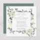 L'élégante invitation à la douche nuptiale présente un cadre botanique de fleurs blanches et de feuilles verts profonds.