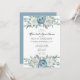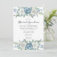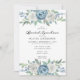 Invitation déjeuner nuptiale avec type élégant et aquarelle fleurs florales en haut et en bas. Les couleurs comprennent le bleu poussiéreux, le blanc et la verdure.
