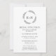 Carte d'invitation au déjeuner nuptiale de Monogramme de couronne de feuille blanche et noire. Célébrez votre journée spéciale avec cette belle et élégante carte de faire-part de mariage pour embellir votre occasion spéciale. Tous les textes sont pré-arrangés pour que vous personnalisiez facilement et rapidement avec vos propres détails.